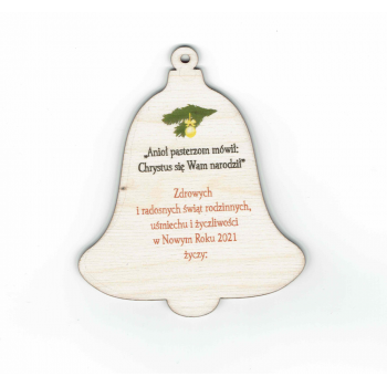 Dzwonek z Aniołkiem BO2 - Drewniana bombka z życzeniami świątecznymi